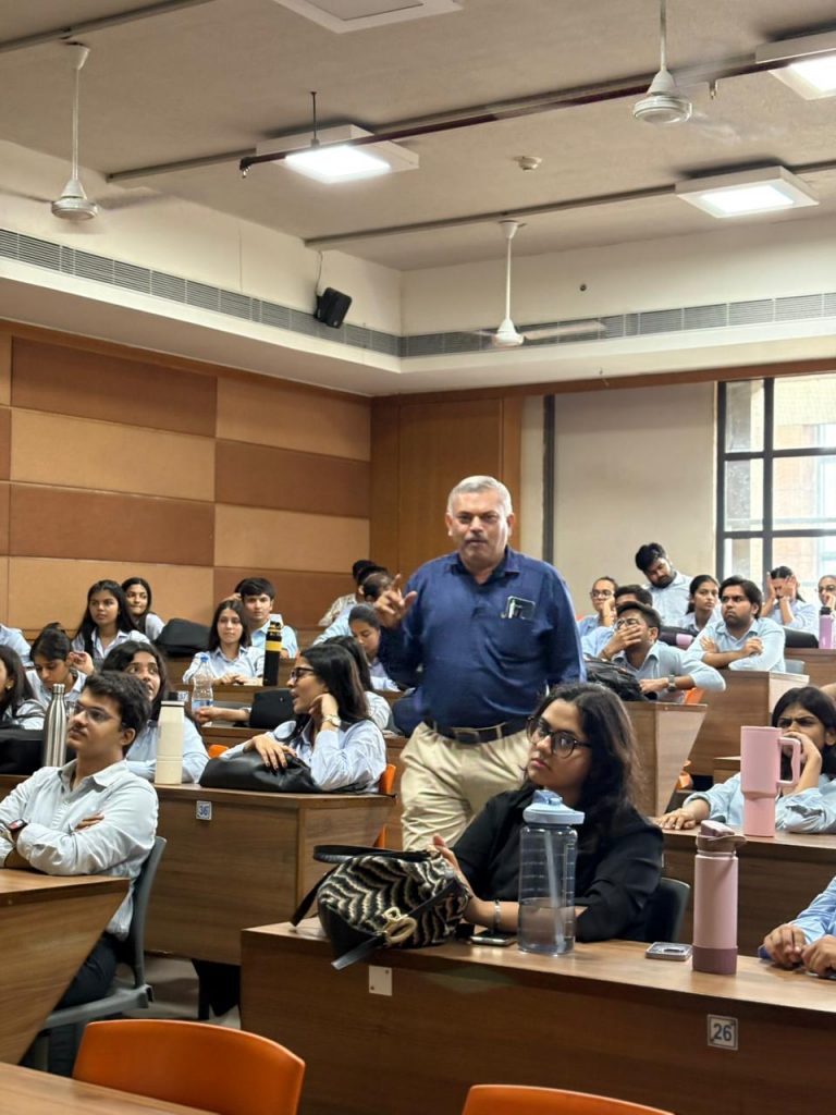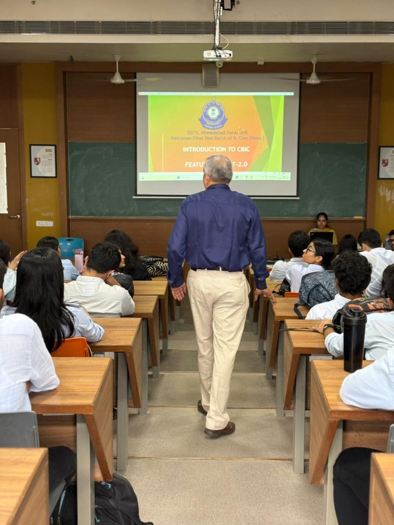 The guest lecture by Anil Shri Daran offered an insightful overview of the Central Board of Indirect Taxes and Customs (CBIC) and its pivotal role in India’s fiscal framework. He explained how the CBIC functions as the backbone of indirect taxation, managing GST, customs, and central excise while ensuring smooth trade and commerce. Highlighting the Union Government’s gross tax revenue, he detailed key sources of revenue, including GST, customs duty, central excise, and various non-tax revenues. He further discussed the persistent challenge of tax evasion and the importance of tax rebates to encourage compliance. The lecture also explored the Budget at a Glance, trends in tax receipts, and the evolving responsibilities of the CBIC, such as rationalizing GST rates, reducing the number of tax slabs, addressing the inverted duty structure, and implementing nil GST for essentials. He emphasized that revenue collected is channeled into nation-building projects, welfare schemes, and infrastructure. With upcoming GST 2.0, rate rationalization and service- related changes aim to simplify the system, strengthen compliance, and boost economic growth while balancing trade competitiveness.
