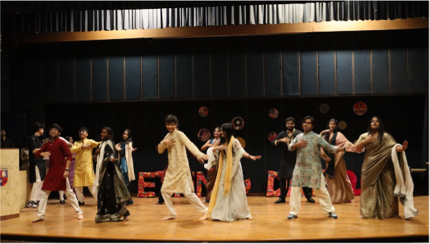 This was followed by a game hosted by Purva Mehta and Shivansh, drawing the crowd into the celebration. Following with the Third-Year students delivered their dance performance. Their performance captured the hearts of the audience and carried them on a wave of energy and colour that cemented the evening’s reputation as one to remember. The senior cohort successfully captured the spirit of “Band Baja Bollywood” at its finest.